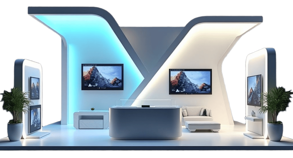 Creative booth and exhibition designs that highlight your brand identity with unique and attractive concepts.